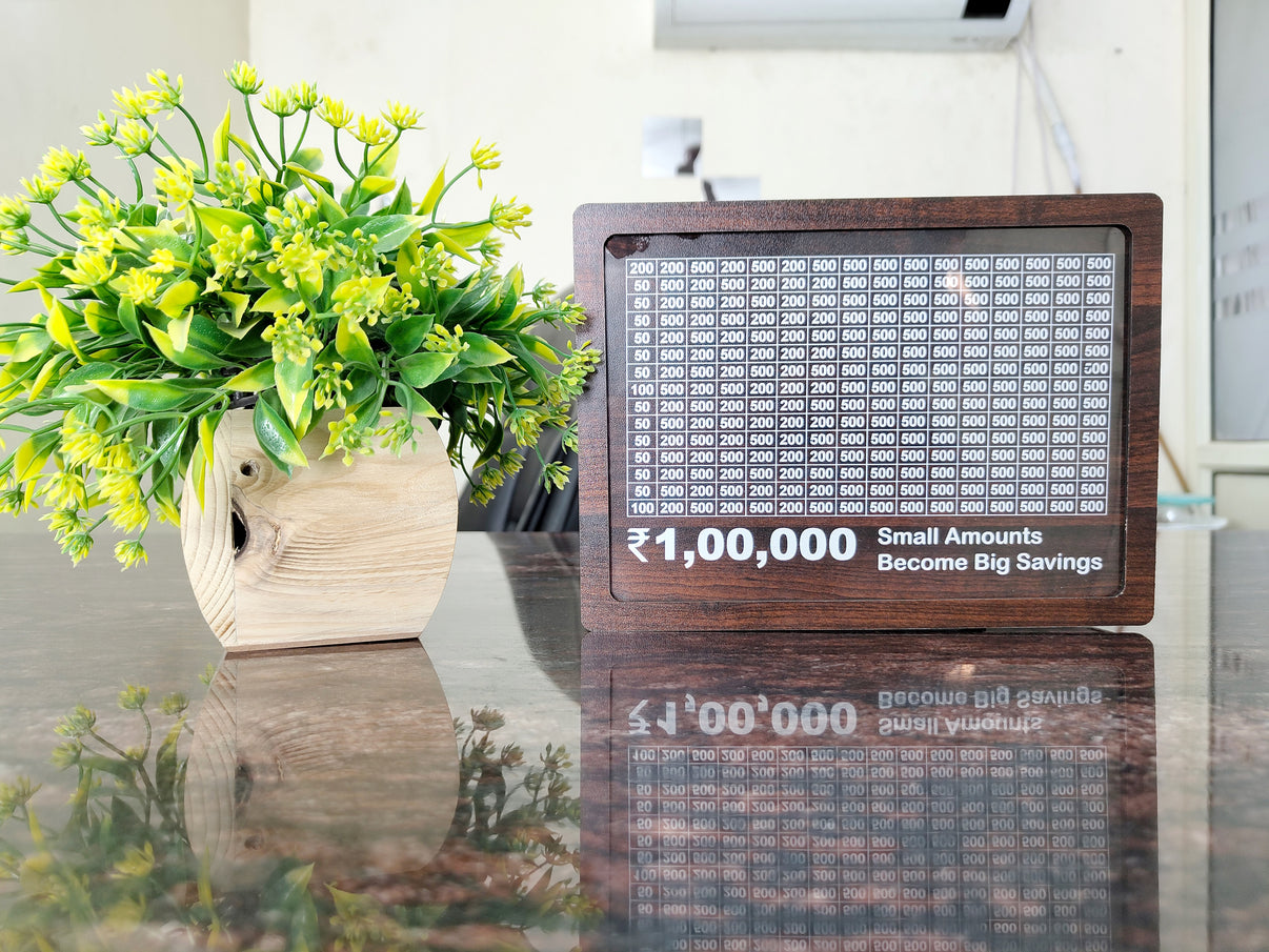 Make saving money an engaging and rewarding experience with our Wooden Money Piggy Bank—a perfect blend of functionality and elegance. Crafted from high-quality wood, this savings box is designed to help both kids and adults develop smart financial habits with an interactive Rupees 1,00,000 goal tracker.